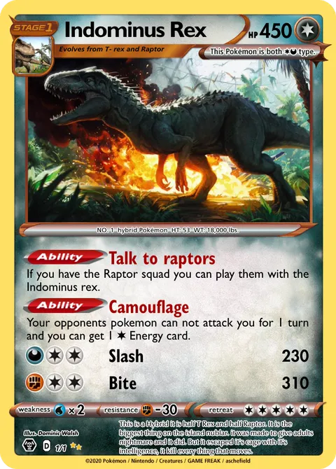 If you have the Raptor squad you can play them with the Indominus rex.Ability: Camouflage