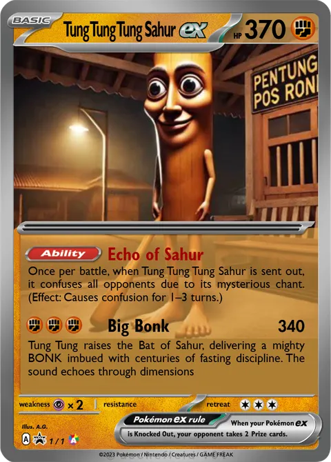 Once per battle, when Tung Tung Tung Sahur is sent out, it confuses all opponents due to its mysterious chant. (Effect: Causes confusion for 1–3 turns.)Big Bonk • 340