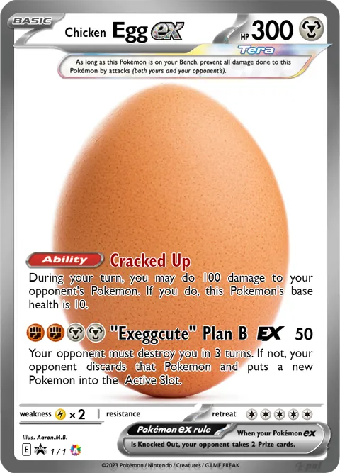 During your turn, you may do 100 damage to your opponent's Pokemon. If you do, this Pokemon's base health is 10.