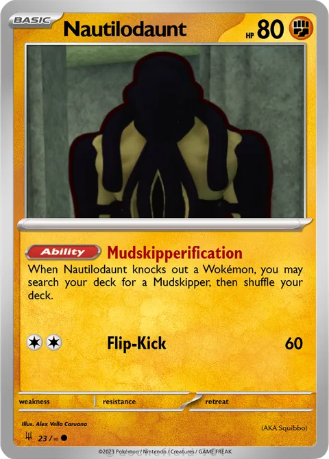 When Nautilodaunt knocks out a Wokémon, you may search your deck for a Mudskipper, then shuffle your deck.Flip-Kick • 60