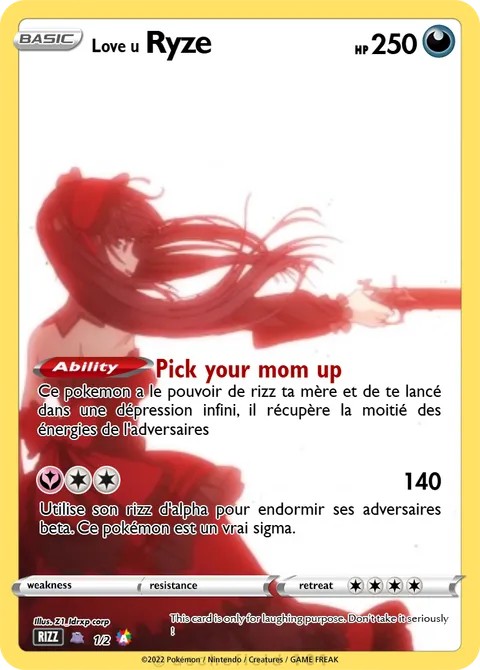 Ce pokemon a le pouvoir de rizz ta mère et de te lancé dans une dépression infini, il récupère la moitié des énergies de l'adversaires