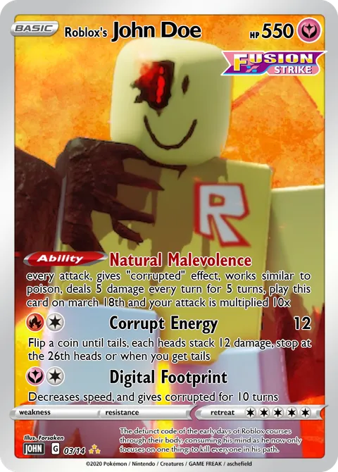 illus. Forsaken#03/14The defunct code of the early days of Roblox courses through their body, consuming his mind as he now only focuses on one thing: to kill everyone in his path. Created by @AndraaTheMaker on 03 June 2025Includes assets by Creatures Inc.