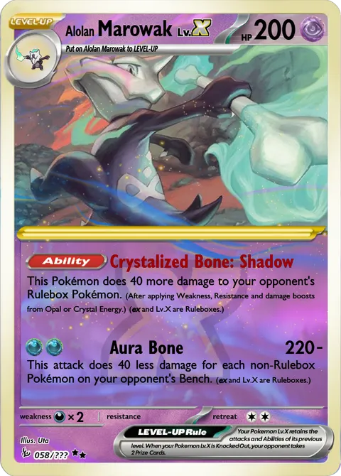 This Pokémon does 40 more damage to your opponent's Rulebox Pokémon. (After applying Weakness, Resistance and damage boosts from Opal or Crystal Energy.) (ex and Lv.X are Ruleboxes.)