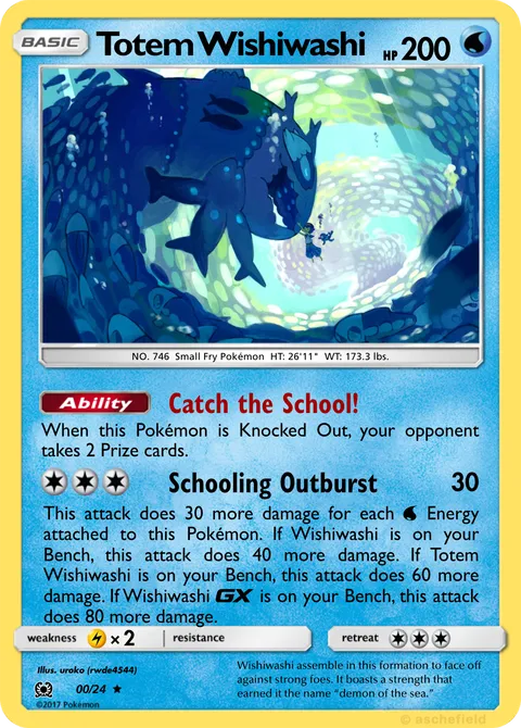 When this Pokémon is Knocked Out, your opponent takes 2 Prize cards.Schooling Outburst • 30+