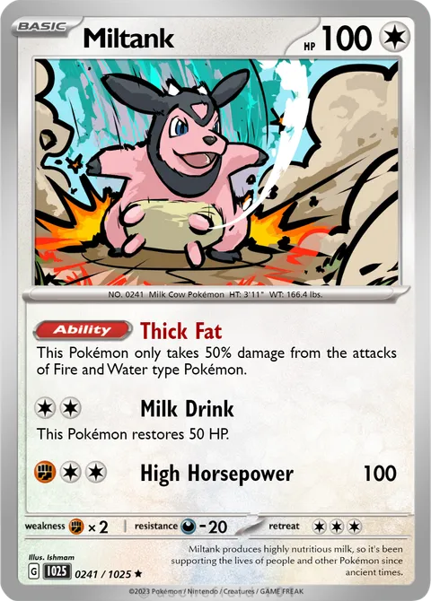 This Pokémon only takes 50% damage from the attacks of Fire and Water type Pokémon.Milk Drink
