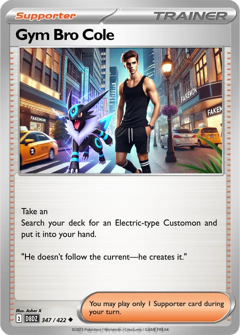 Take an Search your deck for an Electric-type Customon and put it into your hand. "He doesn’t follow the current—he creates it."