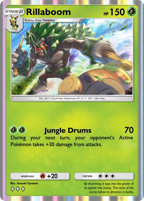 NO. 0812 Drummer Pokémon HT: 6'11" WT: 198.4 lbs.illus. Anesaki DynamicBy drumming, it taps into the power of its special tree stump. The roots of the stump follow its direction in battle.Created by @Avalan on 28 January 2026Includes assets by Creatures Inc.