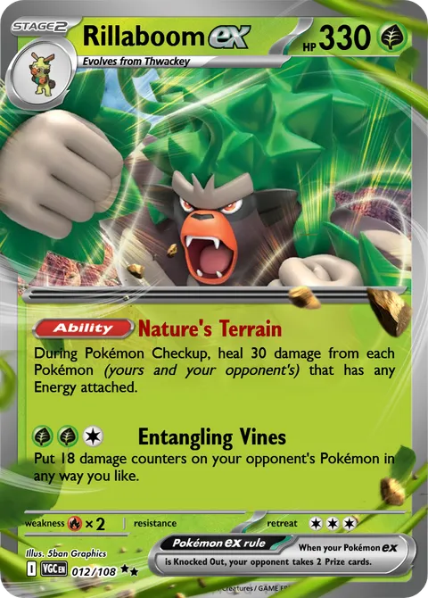 During Pokémon Checkup, heal 30 damage from each Pokémon (yours and your opponent's) that has any Energy attached.Entangling Vines