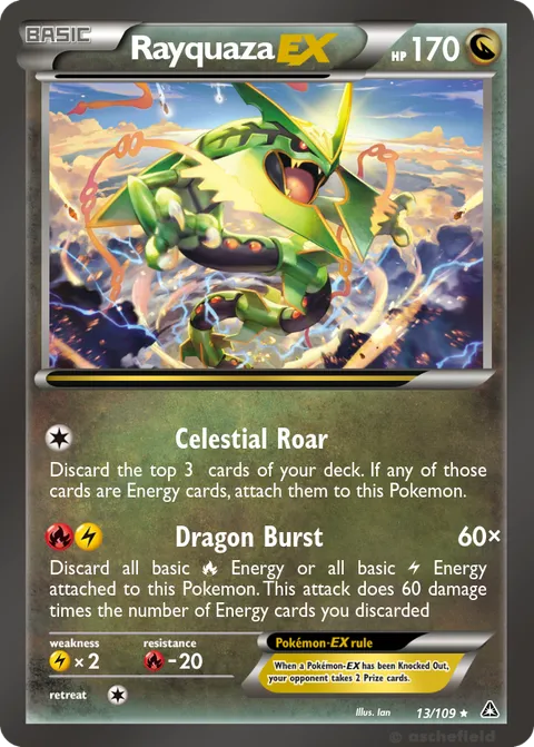 Discard the top 3 cards of your deck. If any of those cards are Energy cards, attach them to this Pokemon. Discard all basic R Energy or all basic L Energy attached to this Pokemon. This attack does 60 damage times the number of Energy cards you discarded illus. Ian#13/109