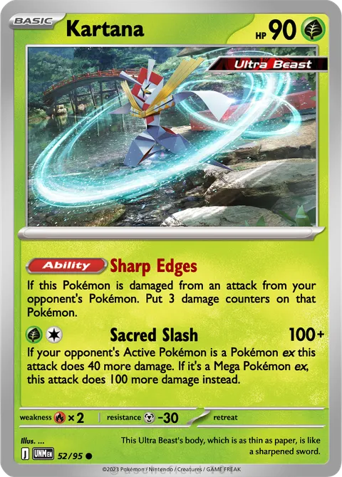 If this Pokémon is damaged from an attack from your opponent's Pokémon. Put 3 damage counters on that Pokémon.Sacred Slash • 100+