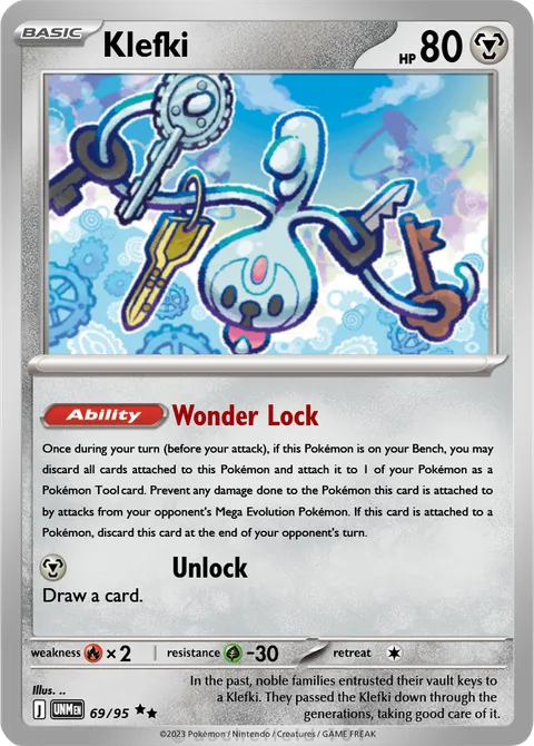 Once during your turn (before your attack), if this Pokémon is on your Bench, you may discard all cards attached to this Pokémon and attach it to 1 of your Pokémon as a Pokémon Tool card. Prevent any damage done to the Pokémon this card is attached to by attacks from your opponent's Mega Evolution Pokémon. If this card is attached to a Pokémon, discard this card at the end of your opponent's turn.Unlock
