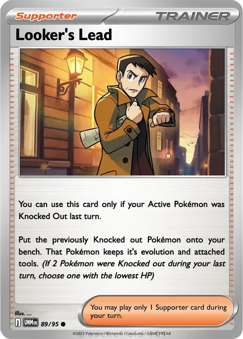 You can use this card only if your Active Pokémon was Knocked Out last turn. Put the previously Knocked out Pokémon onto your bench. That Pokémon keeps it's evolution and attached tools. (If 2 Pokémon were Knocked out during your last turn, choose one with the lowest HP)