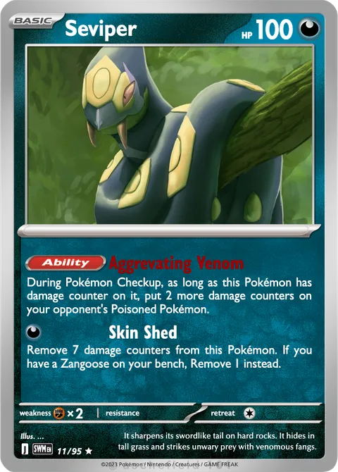 During Pokémon Checkup, as long as this Pokémon has damage counter on it, put 2 more damage counters on your opponent's Poisoned Pokémon.Skin Shed