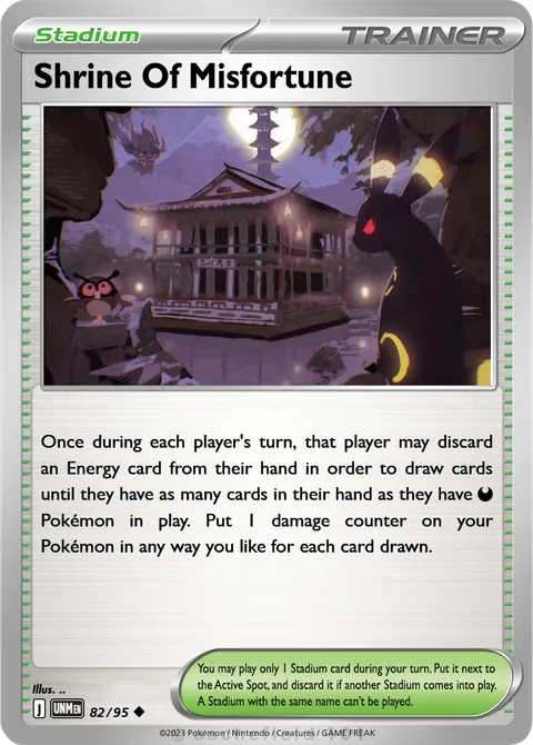 Once during each player's turn, that player may discard an Energy card from their hand in order to draw cards until they have as many cards in their hand as they have D Pokémon in play. Put 1 damage counter on your Pokémon in any way you like for each card drawn.