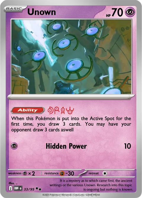 When this Pokémon is put into the Active Spot for the first time, you draw 3 cards. You may have your opponent draw 3 cards aswellHidden Power • 10