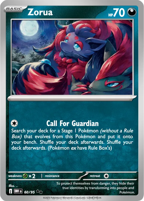 Search your deck for a Stage 1 Pokémon (without a Rule Box) that evolves from this Pokémon and put it onto your bench. Shuffle your deck afterwards. Shuffle your deck afterwards. (Pokémon ex have Rule Box's)