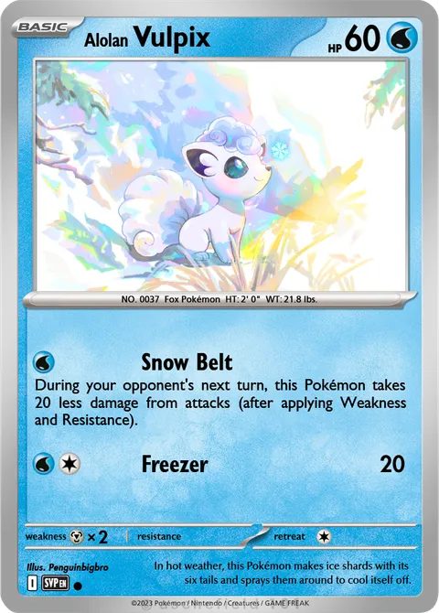 NO. 0037 Fox Pokémon HT: 2' 0" WT: 21.8 lbs.illus. PenguinbigbroIn hot weather, this Pokémon makes ice shards with its six tails and sprays them around to cool itself off.Created by @BlueBoy08 on 04 March 2026, last edited on 04 March 2026