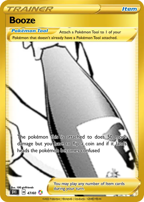 The pokémon this is attached to does 50 more damage but you have to flip a coin and if it lands heads the pokémon becomes confused