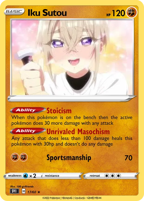 When this pokémon is on the bench then the active pokémon does 30 more damage with any attackAbility: Unrivaled Masochism