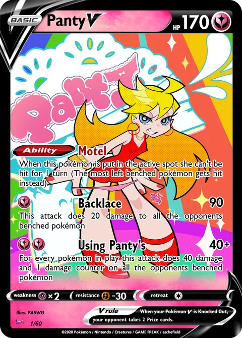 When this pokémon is put in the active spot she can't be hit for 1 turn (The most left benched pokémon gets hit instead)Backlace • 90