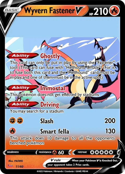 This card can only be put in play by using the "Fastener" tool (This card can fuse with "Hellhound Chuck") (For it to fuse both this card and the "Hellhound" card must be in play and one of them must be in the active spot)Ability: Immortal