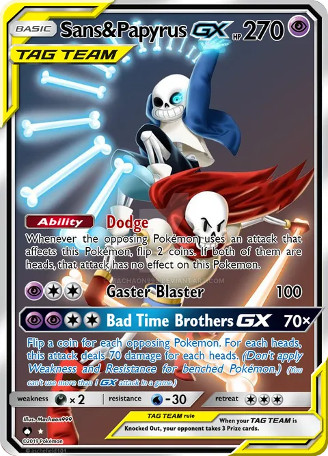 Whenever the opposing Pokémon uses an attack that affects this Pokémon, flip 2 coins. If both of them are heads, that attack has no effect on this Pokemon.Gaster Blaster • 100