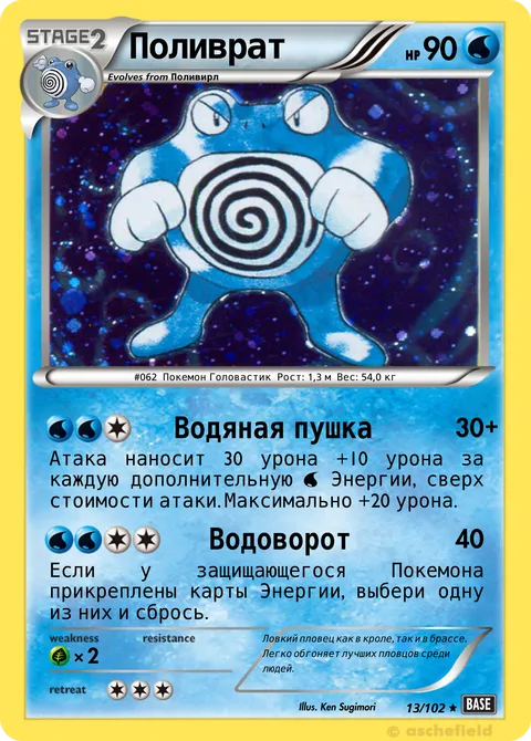 #062 Покемон Головастик Рост: 1,3 м Вес: 54,0 кгillus. Ken Sugimori#13/102Ловкий пловец как в кроле, так и в брассе. Легко обгоняет лучших пловцов среди людей.Created by @Bosstrip77 on 28 March 2025