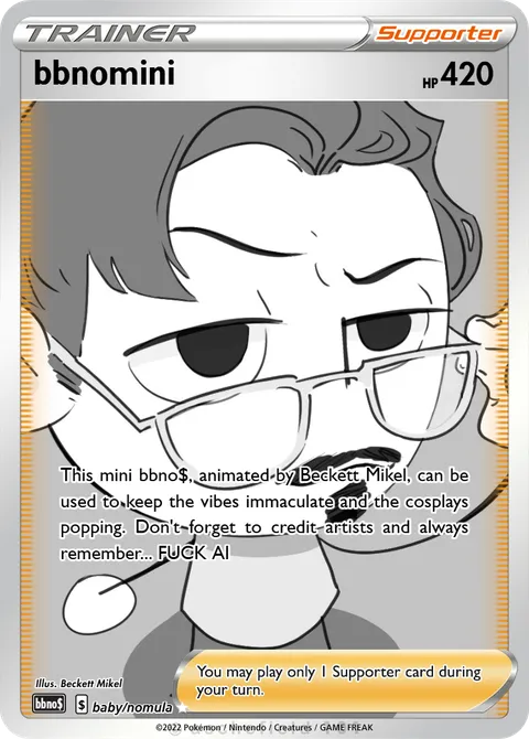 This mini bbno$, animated by Beckett Mikel, can be used to keep the vibes immaculate and the cosplays popping. Don't forget to credit artists and always remember... FUCK AI
