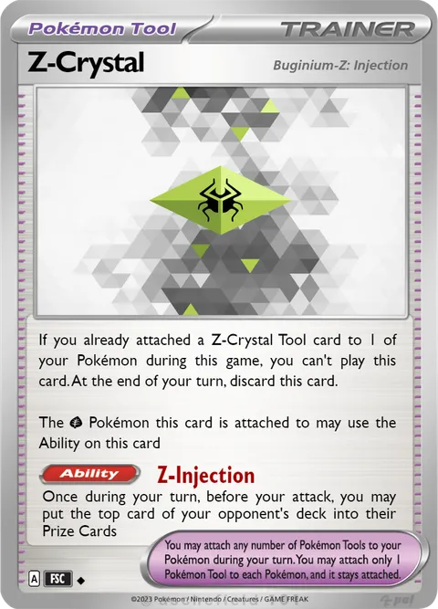 If you already attached a Z-Crystal Tool card to 1 of your Pokémon during this game, you can't play this card. At the end of your turn, discard this card.