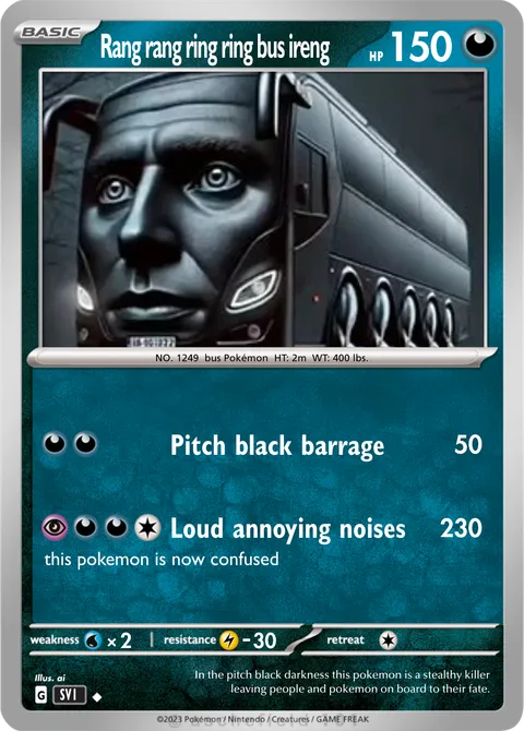 NO. 1249 bus Pokémon HT: 2m WT: 400 lbs.