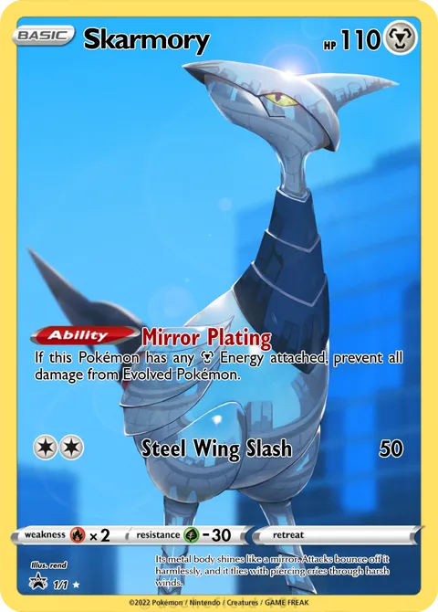 illus. rend#1/1Its metal body shines like a mirror. Attacks bounce off it harmlessly, and it flies with piercing cries through harsh winds.Created by @Candi on 25 June 2025Includes assets by Creatures Inc.