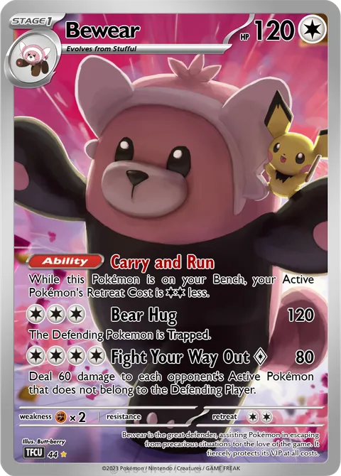 While this Pokémon is on your Bench, your Active Pokémon's Retreat Cost is CC less.Bear Hug • 120