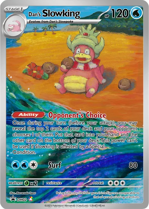 Once during your turn (before your attack), you may reveal the top 2 cards of your deck and your opponent chooses I of them. Put that card into your hand and the other card on the bottom of your deck. This power can't be used if Slowking is affected by a Special