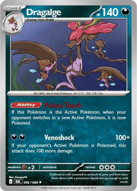 If this Pokémon is the Active Pokémon, when your opponent switches in a new Active Pokémon, it is now Poisoned.Venoshock • 100+