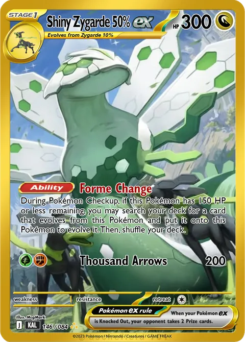During Pokémon Checkup, if this Pokémon has 150 HP or less remaining, you may search your deck for a card that evolves from this Pokémon and put it onto this Pokémon to evolve it. Then, shuffle your deck.Thousand Arrows • 200
