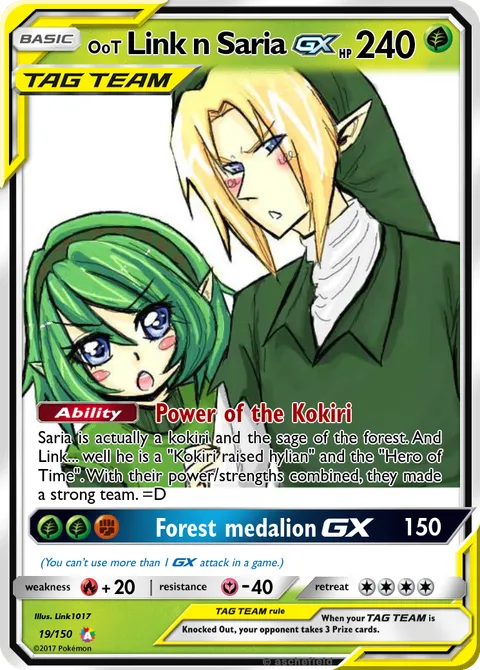 Saria is actually a kokiri and the sage of the forest. And Link... well he is a "Kokiri raised hylian" and the "Hero of Time". With their power/strengths combined, they made a strong team. =DForest medalion • 150