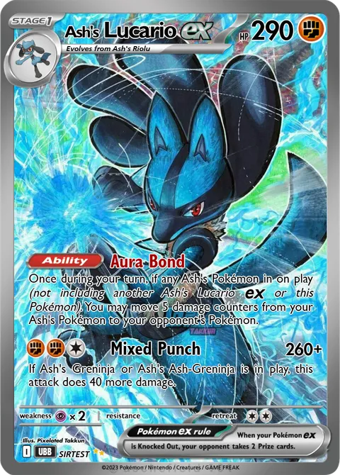 Once during your turn, if any Ash's Pokémon in on play (not including another Ash's Lucario ex or this Pokémon). You may move 5 damage counters from your Ash's Pokémon to your opponent's Pokémon.