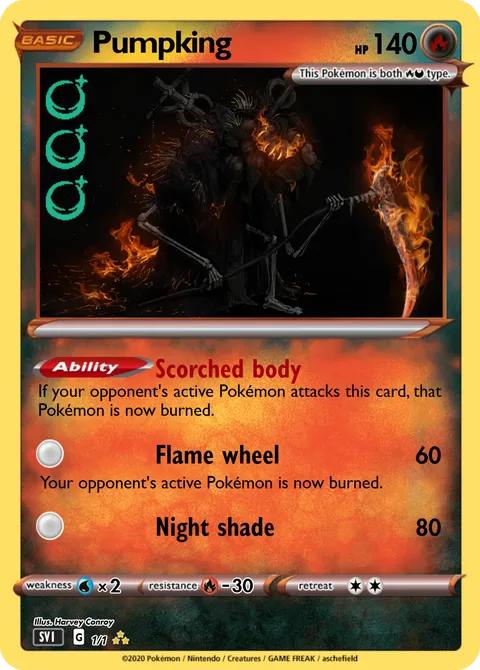 If your opponent's active Pokémon attacks this card, that Pokémon is now burned.Flame wheel • 60