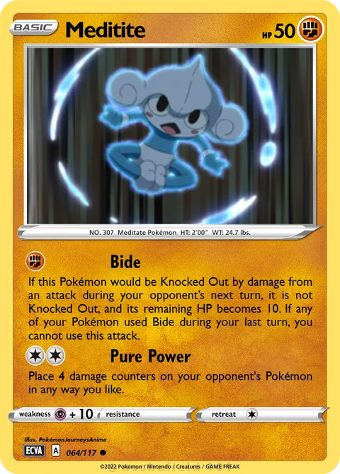 NO. 307 Meditate Pokémon HT: 2'00" WT: 24.7 lbs.illus. PokémonJourneysAnime#064/117Created by @CustomPTCGSets on 31 January 2025
