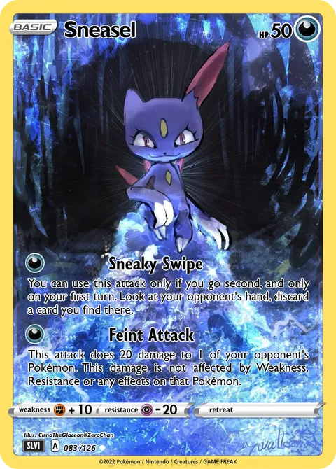 You can use this attack only if you go second, and only on your first turn. Look at your opponent's hand, discard a card you find there. This attack does 20 damage to 1 of your opponent's Pokémon. This damage is not affected by Weakness, Resistance or any effects on that Pokémon. illus. CirnoTheGlaceon@ZeroChan#083 /126