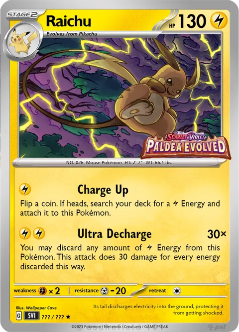 NO. 026 Mouse Pokémon HT: 2' 7" WT: 66.1 lbs.illus. Wallpaper Cave#???/???Its tail discharges electricity into the ground, protecting it from getting shocked.Created by @Darthren2603 on 06 July 2023