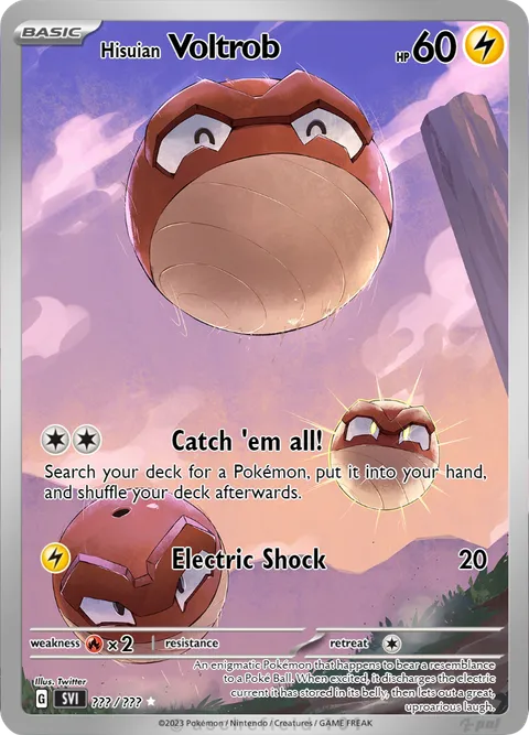 illus. Twitter#???/???An enigmatic Pokémon that happens to bear a resemblance to a Poké Ball. When excited, it discharges the electric current it has stored in its belly, then lets out a great, uproarious laugh.Created by @Darthren2603 on 06 July 2023