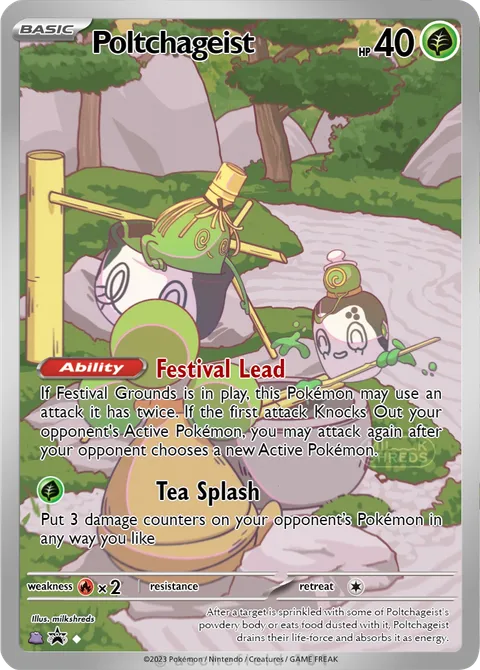If Festival Grounds is in play, this Pokémon may use an attack it has twice. If the first attack Knocks Out your opponent's Active Pokémon, you may attack again after your opponent chooses a new Active Pokémon.
