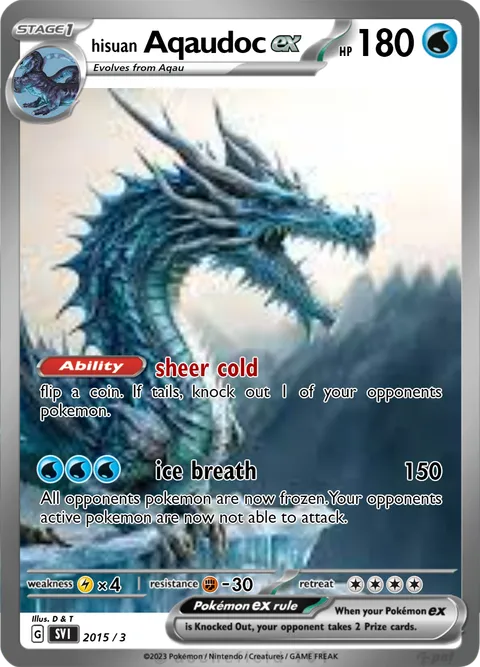 flip a coin. If tails, knock out 1 of your opponents pokemon.ice breath • 150