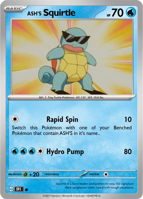 NO. 7 Tiny Turtle Pokémon HT: 1'8" WT: 19.8 lbs.Squirtle is a born leader and prefers to wear his signature dark sunglasses when faced with tough situations.Created by @DittoFan1 on 12 January 2025
