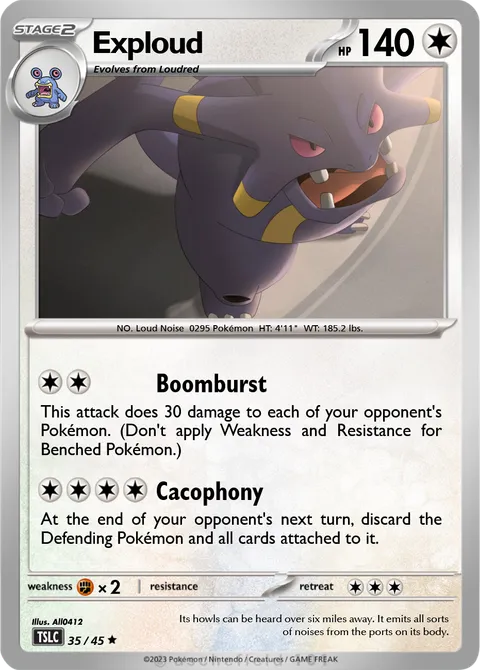 NO. Loud Noise 0295 Pokémon HT: 4'11" WT: 185.2 lbs.illus. All0412#35/45Its howls can be heard over six miles away. It emits all sorts of noises from the ports on its body. Created by @DominikP7 on 14 August 2025