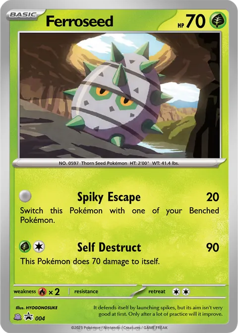 NO. 0597 Thorn Seed Pokémon HT: 2'00" WT: 41.4 lbs.illus. HYOGONOSUKE#004It defends itself by launching spikes, but its aim isn't very good at first. Only after a lot of practice will it improve.Created by @DominikP7 on 11 August 2025