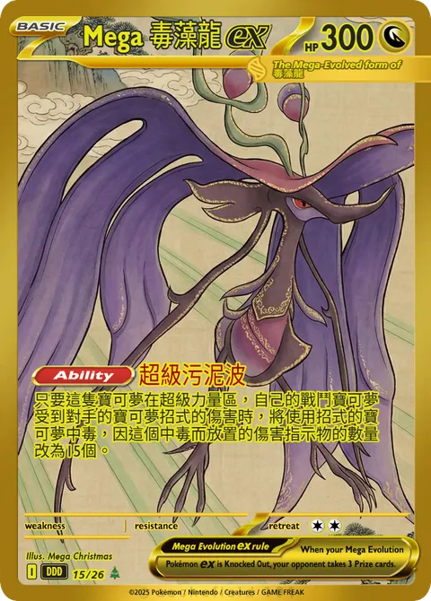 只要這隻寶可夢在超級力量區,自己的戰鬥寶可夢 受到對手的寶可夢招式的傷害時,將使用招式的寶 可夢中毒,因這個中毒而放置的傷害指示物的數量 改為15個。