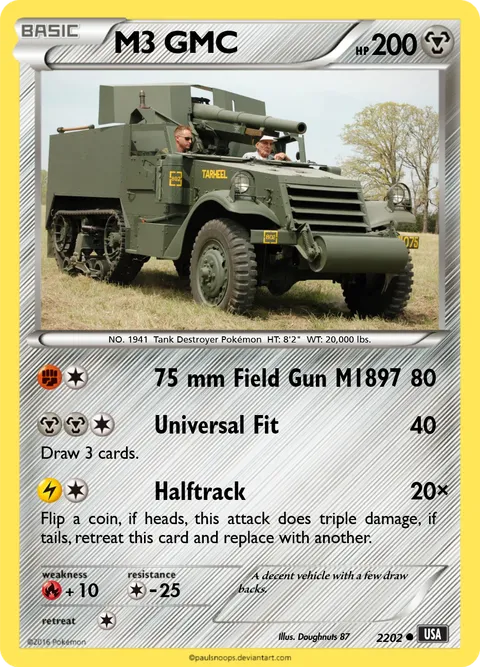 NO. 1941 Tank Destroyer Pokémon HT: 8'2" WT: 20,000 lbs.illus. Doughnuts 87#2202 A decent vehicle with a few draw backs. Created by @Doughnuts_87 on 06 February 2024