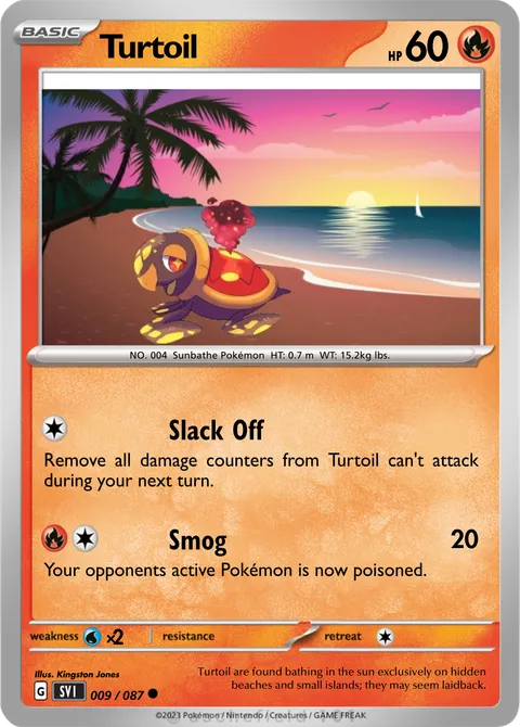 NO. 004 Sunbathe Pokémon HT: 0.7 m WT: 15.2kg lbs.illus. Kingston Jones#009/087Turtoil are found bathing in the sun exclusively on hidden beaches and small islands; they may seem laidback.Created by @Draconic on 03 June 2025